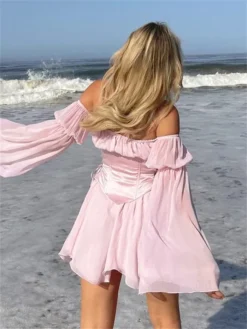 Women Vintage Dress Off Shoulder