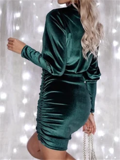 Women’s Fall Velvet Dress Solid Color Round