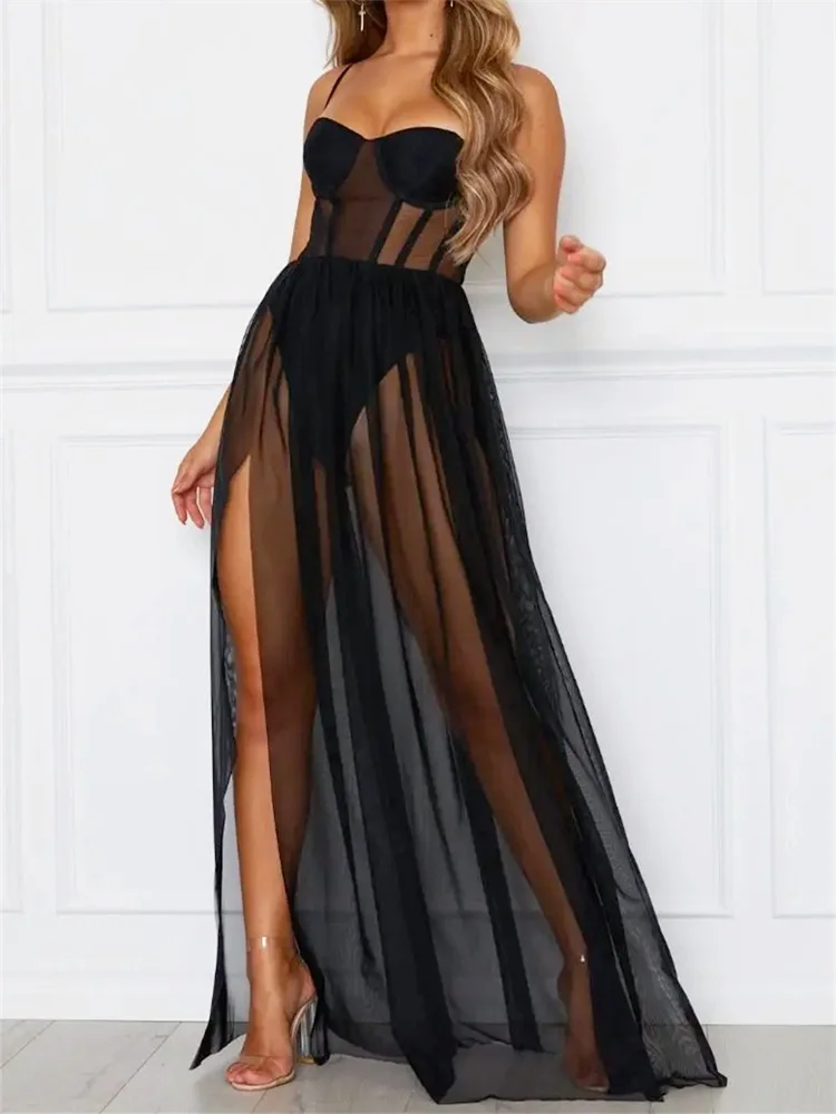 2024 Fashion Mesh Sheer Bodysuit Dress