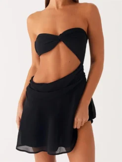 Cutout waist, twisted bust and ruched, strapless, bandage and backless, mini length; Strapless tube dress; Casual dresses for women; Cute dresses for women that will enhance your fashion taste