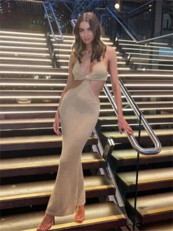 Womens Summer Short Sling Dress Solid Color Sleeveless Backless Hanging Neck Dress